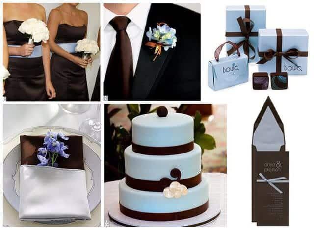 I love neutral color palettes, there is something simple and elegant about them that softly screams elegance. This particular palette has two colors of brown (a darker one and a softer one like mocha) then we have a soft baby blue and white. Here is a gallery of ideas that I came up with to show you how you can accomplish this look:
